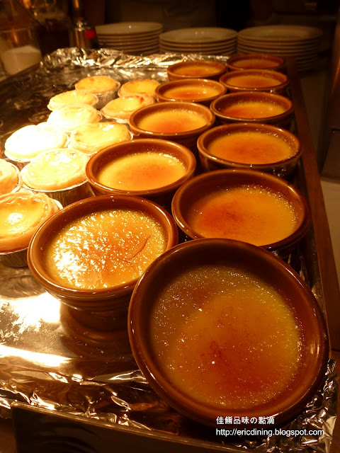甜品中有最愛的焦糖燉蛋,嫩滑的燉蛋面上被甜脆的焦糖封著,味道無懈可擊。再加上傍邊的麵包布甸,軟棉棉的質感,大小恰好做到一口一件,不經不覺也吃了五六件。